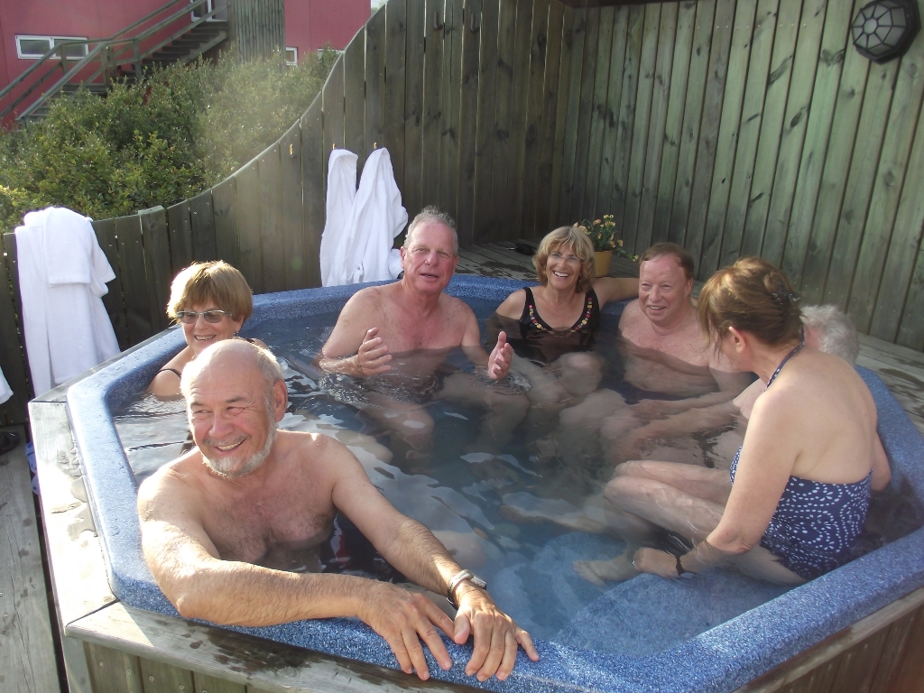 נצלנו את ההזדמנות , של הערב האחרון, יחד בחברותא , א) לטבול בביכות החיצוניות של המלון Glymor, מול הנוף, תחת כיפת השמיים , באור יום (עדיין )